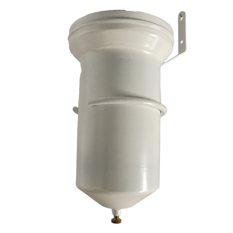 Instrumento para la recogida y medición de las precipitaciones. Para una mayor exactitud en la medición se requiere de una probeta para obtener el milimetraje.Material Aluminio