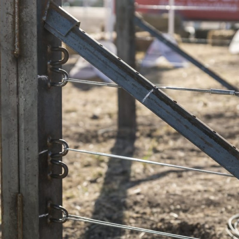 Producido a partir de perfiles de acero, fue desarrollado para cumplir con el armado de un alambrado tradicional de 7 hilos y soportar resistencias mayores a 3 toneladas.